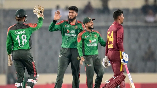 ওয়েস্ট ইন্ডিজের বিপক্ষে সিরিজ নির্ধারণী তৃতীয় ওয়ানডেতে ১৭৯ রানের বিশাল জয়ে ২-১ ব্যবধানে সিরিজ নিশ্চিত করেছে বাংলাদেশ। মিরপুরে অনুষ্ঠিত এই ম্যাচে জয়ের মূল ভিত্তি গড়ে দেন দুই ওপেনার সৌম্য সরকার ও সাইফ হাসান। তাদের ১৭৬ রানের বিস্ফোরক উদ্বোধনী জুটিতে ভর করে বাংলাদেশ নির্ধারিত ৫০ ওভারে ৮ উইকেটে ২৯৬ রানের বড় সংগ্রহ পায়। জবাবে বাংলাদেশি স্পিনারদের ঘূর্ণিতে মাত্র ১১৭ রানেই গুটিয়ে যায় ওয়েস্ট ইন্ডিজ।