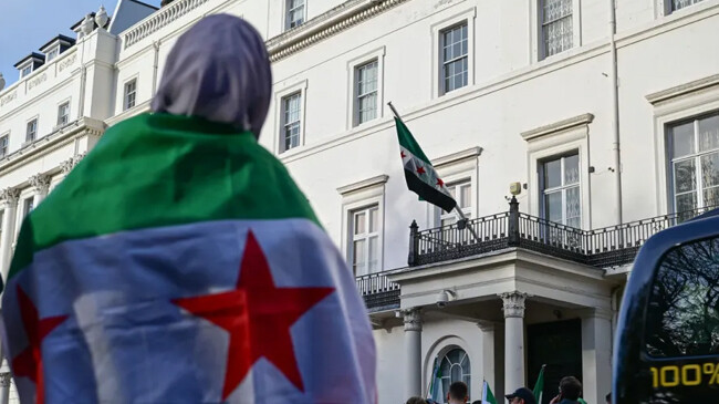 ১২ বছর পর লন্ডনে সিরিয়ার দূতাবাসে উড়ল পতাকা