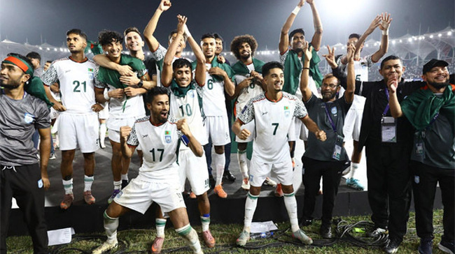 ভারতের বিপক্ষে দীর্ঘ ২২ বছরের অপেক্ষার অবসান ঘটিয়ে ১-০ গোলের ঐতিহাসিক জয় পেয়েছে বাংলাদেশ। এই জয়ে পুরো দেশের ক্রীড়াঙ্গনে এখন উৎসবের আমেজ। ম্যাচ শুরুর আগে থেকেই জাতীয় স্টেডিয়ামের গ্যালারি ছিল কানায় কানায় পূর্ণ। বাংলাদেশ-ভারতের এই লড়াই মাঠে বসে উপভোগ করতে এসেছিলেন বিভিন্ন ক্ষেত্রের বিশিষ্ট ব্যক্তিবর্গ এবং সরকারের উপদেষ্টারা।