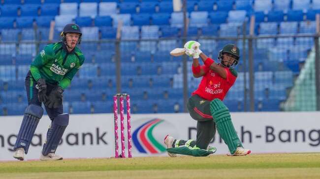 সাগরিকায় টস হেরে ফিল্ডিংয়ে নামা বাংলাদেশ শুরুতেই আইরিশদের চাপে ফেলার আভাস দিলেও পল স্টার্লিংয়ের ব্যাটে সফরকারীরা পাল্টা আক্রমণ শুরু করে। তবে সেই প্রতিরোধ বেশিক্ষণ টেকেনি। তানজিদ তামিমের অবিশ্বাস্য ফিল্ডিং আর রিশাদ-মোস্তাফিজের বোলিং তোপে ১৯.৫ ওভারে মাত্র ১১৭ রানেই গুটিয়ে যায় আয়ারল্যান্ড। লক্ষ্য তাড়ায় নেমে তামিমের ঝড়ো ৫৫ ও পারভেজ হোসেন ইমনের ৩৩ রানে ভর করে ৩৮ বল হাতে রেখেই জয়ের বন্দরে পৌঁছে যায় লাল-সবুজের প্রতিনিধিরা।