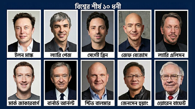 বিশ্বের শীর্ষ ১০ ধনীর সম্পদ ২.৫ ট্রিলিয়ন ডলার! ৯ জনই যুক্তরাষ্ট্রের