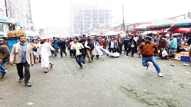 পূর্বঘোষিত কর্মসূচি অনুযায়ী, সকাল সোয়া ১১টার দিকে কিচেন মার্কেটের সামনে সহস্রাধিক ব্যবসায়ী চাঁদাবাজির বিরুদ্ধে মানববন্ধনে অংশ নেন। কিছু সময় পর হঠাৎ একদল বহিরাগত ব্যক্তি সেখানে এসে হামলা চালায়। এতে মানববন্ধন ছত্রভঙ্গ হয়ে পড়ে এবং পরিস্থিতি দ্রুত উত্তপ্ত হয়ে ওঠে।