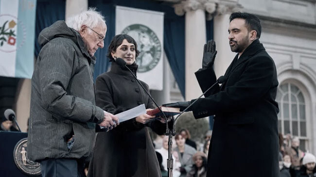 ইংরেজি নতুন বছরের প্রথম দিন যুক্তরাষ্ট্রের নিউইয়র্ক সিটির প্রথম মুসলিম মেয়র হিসেবে শপথ নিয়েছেন তরুণ ডেমোক্র্যাট নেতা জোহরান মামদানি। তার অভিষেক অনুষ্ঠানে অংশ নেন প্রায় ৫০ হাজার মানুষ। পুরো অনুষ্ঠান ঘিরে ছিল জমকালো আয়োজন। লোয়ার ম্যানহাটানের সিটি হলের সামনে উন্মুক্ত প্রাঙ্গণে এ আয়োজন করা হয়। সেখানে পবিত্র কোরআন ছুঁয়ে শপথ নেন মামদানি।