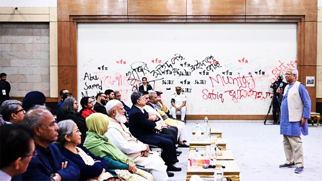 জুলাই অভ্যুত্থানের প্রসঙ্গ তুলে ধরে ড. ইউনূস বলেন, নিরস্ত্র ছাত্র-তরুণরা ও সাধারণ মানুষ যেভাবে সাহসের সঙ্গে অস্ত্রের মুখে দাঁড়িয়ে অন্যায়ের বিরুদ্ধে প্রতিরোধ গড়ে তুলেছিল সেটাই আমাদের সবচেয়ে বড় শিক্ষা।