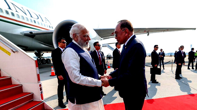 দ্বিপাক্ষিক সম্পর্ককে আরও সুদৃঢ় করার লক্ষ্য নিয়ে দুই দিনের সরকারি সফরে মালয়েশিয়ায় পৌঁছেছেন ভারতের প্রধানমন্ত্রী নরেন্দ্র মোদি। মালয়েশিয়ার প্রধানমন্ত্রী দাতুক সেরি আনোয়ার ইব্রাহিমের বিশেষ আমন্ত্রণে তার এই সফর অনুষ্ঠিত হচ্ছে। শনিবার স্থানীয় সময় বিকেল ৪টা ৪০ মিনিটে কুয়ালালামপুর আন্তর্জাতিক বিমানবন্দরের বুংগা রায়া কমপ্লেক্সে মোদিকে বহনকারী বিমানটি অবতরণ করে। সেখানে তাকে লাল গালিচা সংবর্ধনা প্রদানের পাশাপাশি উষ্ণ অভ্যর্থনা জানান স্বয়ং প্রধানমন্ত্রী আনোয়ার ইব্রাহিম।