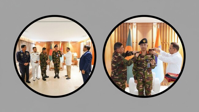 পিএসও ও ডিজিএফআই প্রধানকে র্যাংক ব্যাজ পরিয়ে দিলেন প্রধানমন্ত্রী