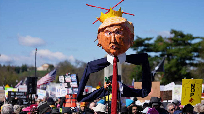 যুক্তরাষ্ট্রজুড়ে প্রেসিডেন্ট ডোনাল্ড ট্রাম্পের নীতির বিরুদ্ধে নজিরবিহীন বিক্ষোভে রাস্তায় নেমেছেন লাখো মানুষ। ‘নো কিংস’ (কোনো রাজা নয়) শিরোনামে সংগঠিত এই আন্দোলন এখন দেশব্যাপী এক বড় রাজনৈতিক প্রতিরোধে রূপ নিয়েছে। খবর রয়টার্স।