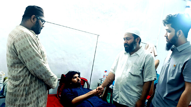 শুক্রবার মাগরিবের নামাজের পর খোমেনী ইহসান জাতীয় বিপ্লবী পরিষদের সহকারী সদস্য সচিব গালীব ইহসান এবং বিপ্লবী ছাত্র পরিষদের আহ্বায়ক আব্দুল ওয়াহেদকে সঙ্গে নিয়ে চিকিৎসা কেন্দ্রে যান। সেখানে তিনি প্রায় দেড় ঘণ্টা অবস্থান করে আহত মুসাদ্দিক আলী ইবনে মোহাম্মদ, এ বি যোবায়ের ও সাইয়েদুজ্জামান নূর আলভীর শারীরিক অবস্থার খোঁজখবর নেন। এ সময় তিনি জুলাই বিপ্লবীদের ওপর হামলা এবং দেশের সার্বিক পরিস্থিতি নিয়ে তাদের সঙ্গে আলোচনা করেন।