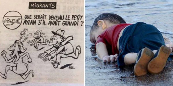 তুরস্ক উপকূলে ভেসে আসা সিরীয় শিশু আয়লানের মৃতদেহ নিয়ে বিদ্রূপাত্মক কার্টুন প্রকাশ করলো ফরাসি ম্যাগাজিন শার্লি এবদো। এ ঘটনায় বিশ্বব্যাপী সমালোচনার মুখে পড়েছে ফরাসী এ ম্যাগাজিনটি।