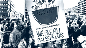 বিক্ষোভকারীদের হাতে ‘ফিলিস্তিন থেকে জায়নবাদী...